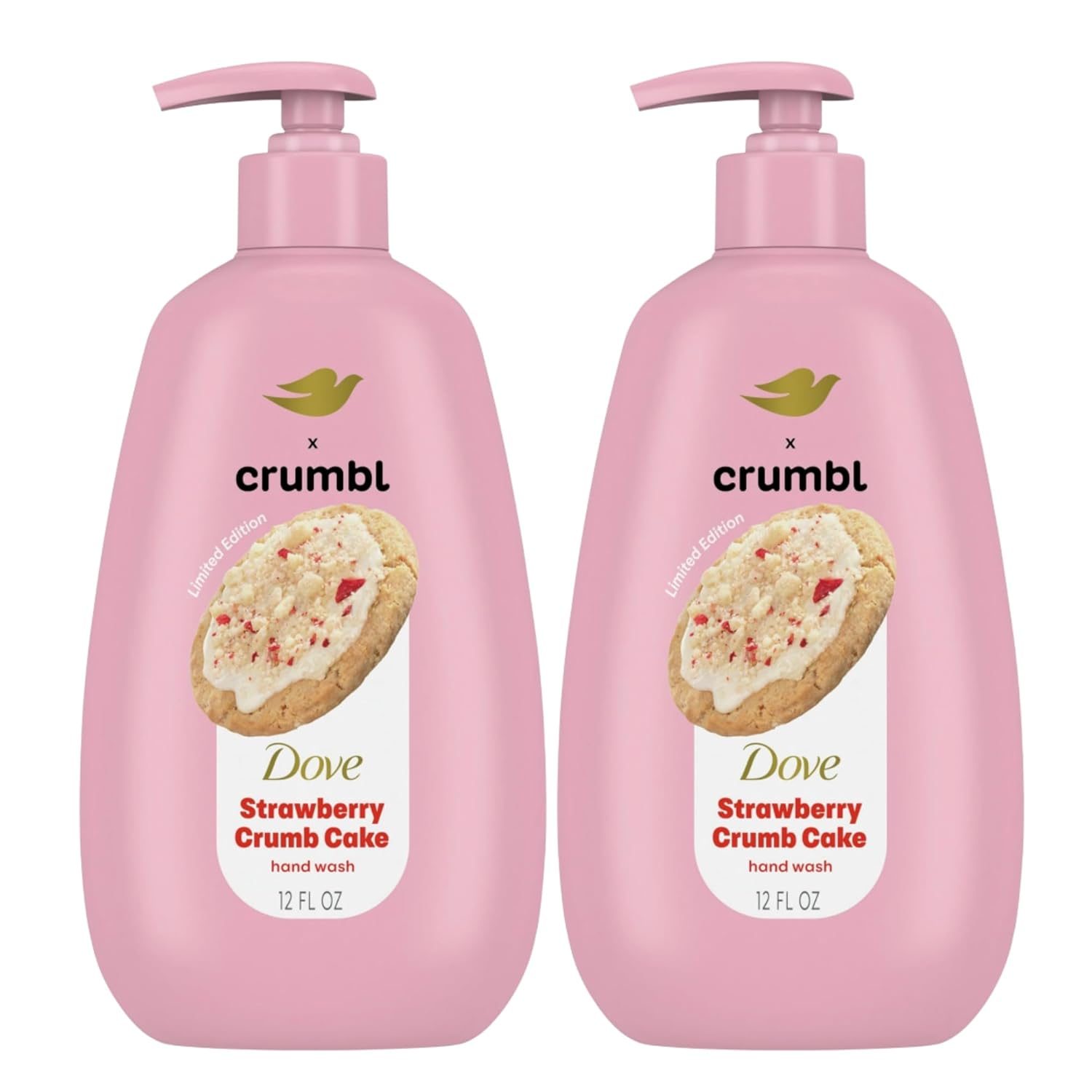 • Dove Crumbl Moisturizing Liquid Hand Wash Strawberry Crumb Cake, 2-pack of 12 oz bottle with pump